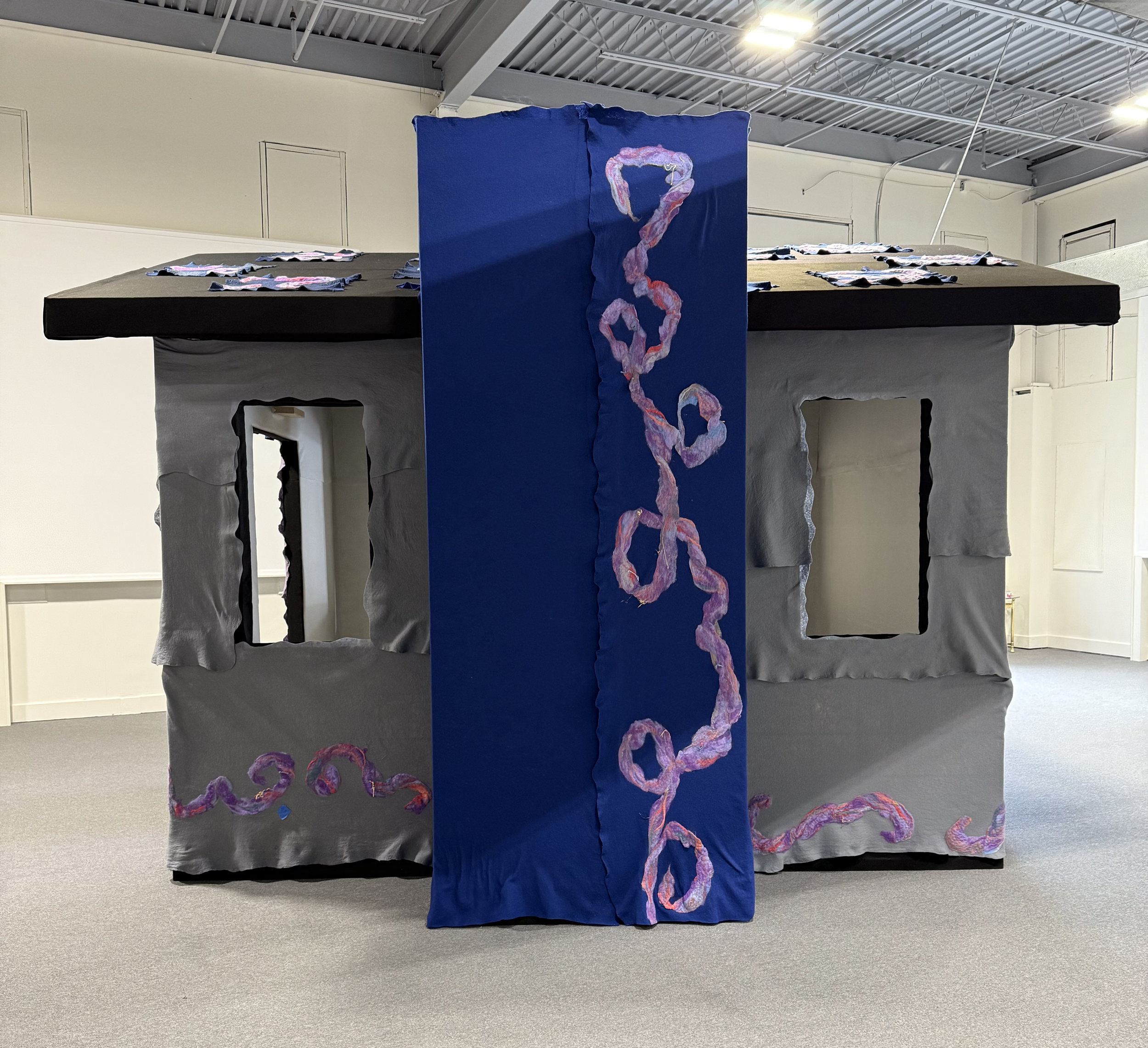 Y is for YES is a large-scale community installation, conceived by Kathy Clem, featuring a large scale 10ft by 12ft house that was built on site wrapped in 52 handmade pieces of felt with the help of over 60 community members.